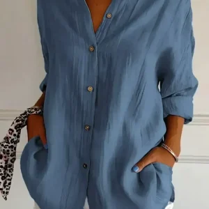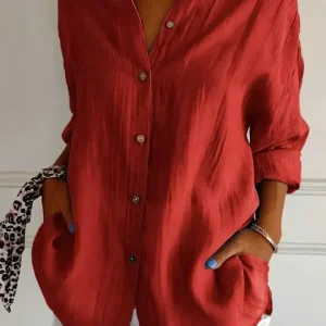 Upgrade your wardrobe with our Classic Pleated Textured Single-Breasted Lapel Shirt for Women, elevating your style and keeping you comfortable during the spring and summer seasons.