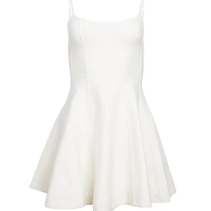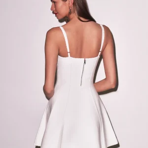 Go from brunch to bar in our flirty Flared Corset Dress. Features low cut square neckline and adjustable straps with scalloped detail. Cut from soft stretch jacquard with corset seaming to show off your waist. Exposed back zipper closure and playful flare skirt. Fitted style, mini length. Layer over your favorite Essentials Panty for a seamless look.
