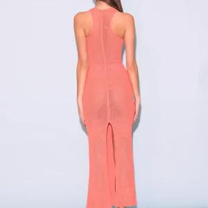 Our semi-sheer Lace Pointelle Maxi Dress, cut from soft stretch knit with pointelle detailing. Features perfectly placed florals for added coverage. Lightweight with flattering racer back. We love it as a swim coverup or sexy going out piece.