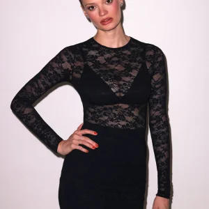 The chicest comfort. Our Le Stretch Lace Long Sleeve Dress, cut from ultra comfortable 4-way stretch lace in a flattering midi length with back keyhole detail. Unlined, designed to be fitted. Layer yours over the matching Le Stretch Lace Bodysuit, or Le Stretch Micro Triangle Bra and Micro Jersey Slip Skirt.