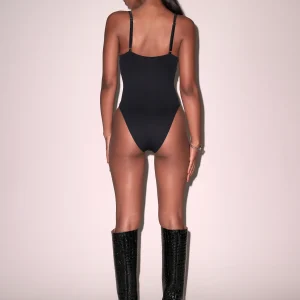 Take the plunge. Our second skin Le Stretch Micro Seduce U-Plunge Bodysuit, cut from ultra comfortable 4-way stretch microfiber with molded cups for a smooth finish. Features luxe silk adjustable straps with bottom snap closure and thong cut back. Go effortlessly chic by pairing with your boyfriend jeans, or layer it under that dress that’s just a little too sheer to completely bare it.